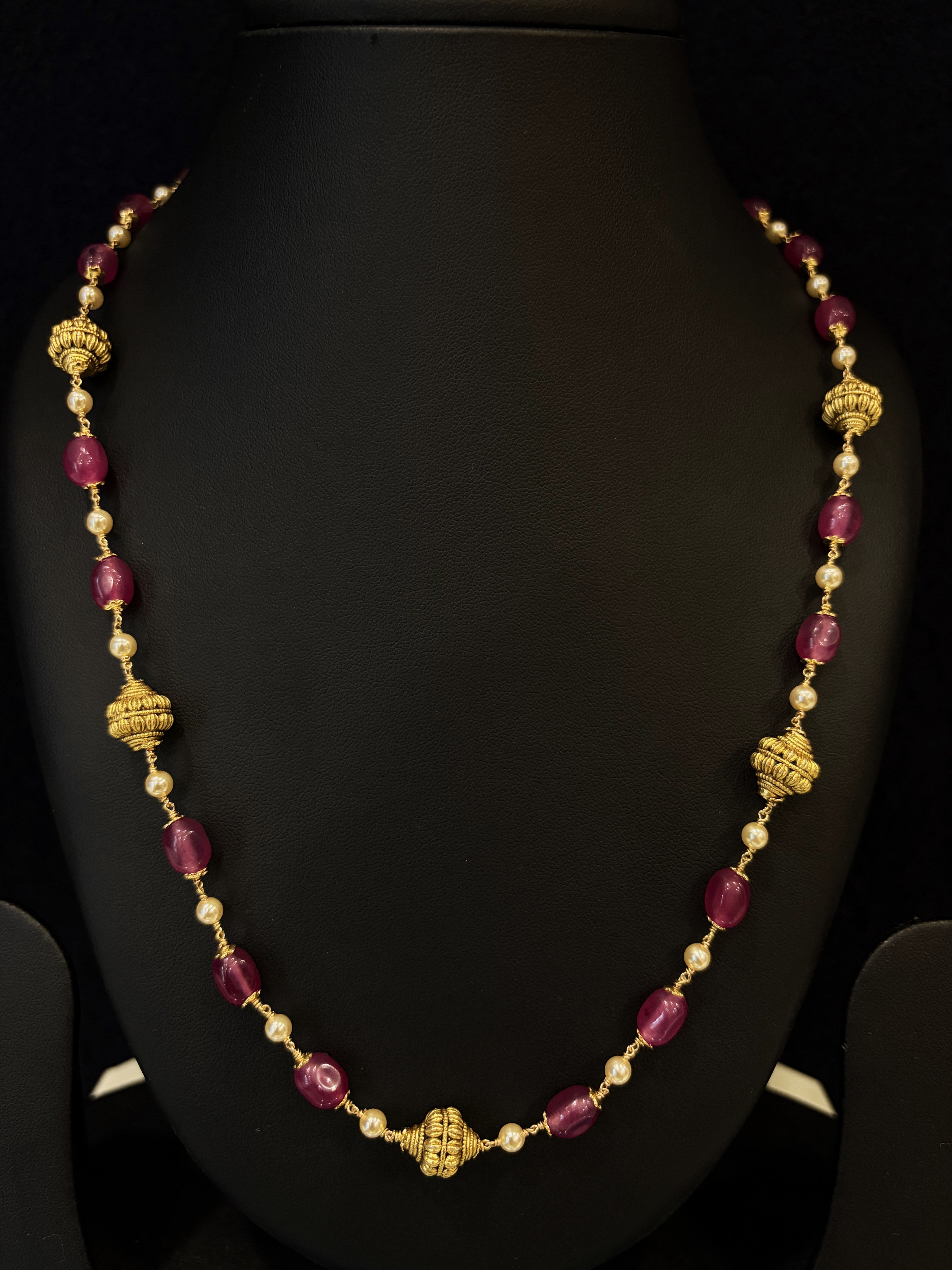 Ivika Dull dull Pink Ruby; Pearl Nakshi Necklace