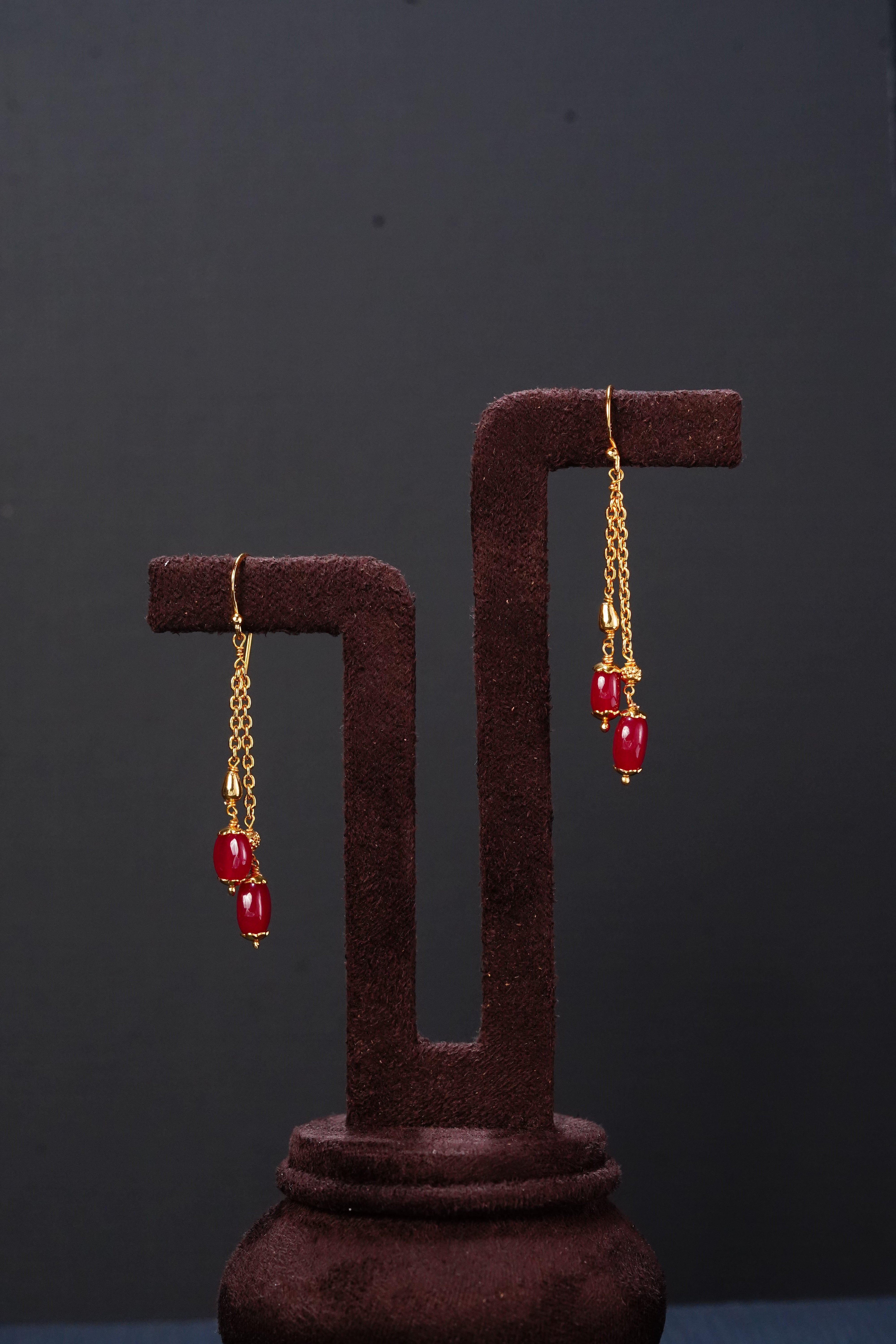 Elegant earrings in 925 sterling silver, designed with radiant chatam rubies for a regal and bold finish. This masterpiece balances heritage and modern elegance—perfect to elevate festive attire, wedding celebrations, or evening ensembles. Designed to embrace sophistication with a royal touch, it’s a timeless jewel to treasure.