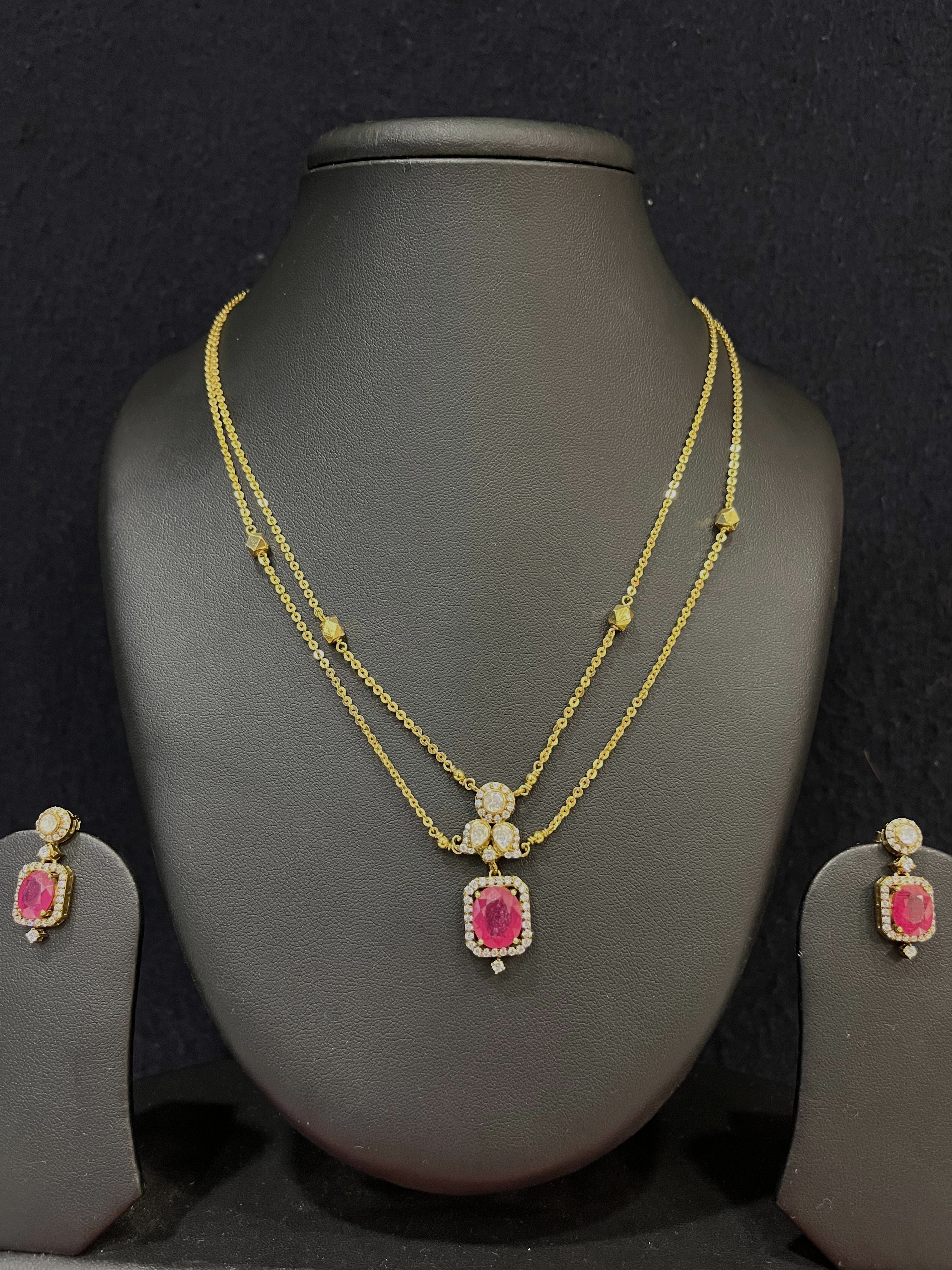 Ivika Ruby & Moissanite Locket Necklace With CZ Earrings